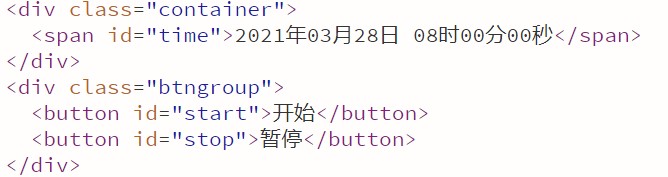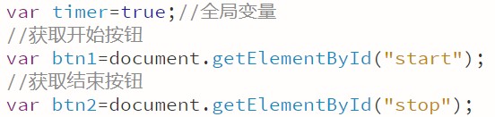 Js部分首先设置一个全局变量 timer赋值为true(命名根据自己需求而定),然后获取开始按钮和暂停按钮。如下图