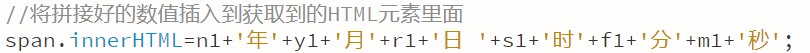 将拼接好的数值进行最后的拼接并插入到之前获取到的HTML元素里面