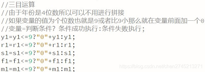 之后我们对转换后的数值进行补零操作,意思是如果转换后的值没有两位数也就是小于10就要在那个数值的前面加个0达到形成两位数的效果。这样子后面拼接下来也就好看很多,拼接的方法也很简单使用三目运算就行了。如下图