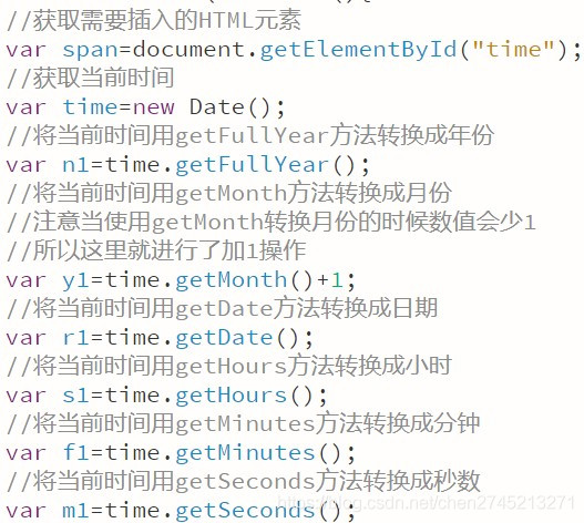 然后在计时器里面的回调函数里获取到需要插入的HTML元素,之后获取当前时间,并将当前的时间一个个的转接成年、月、日、时、分、秒。如下图