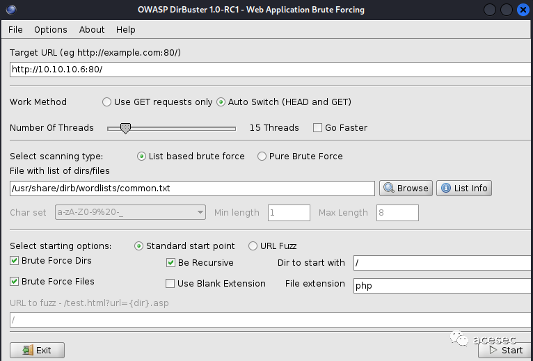 题外:目录扫描也可以用Kali自带工具DirBuster: