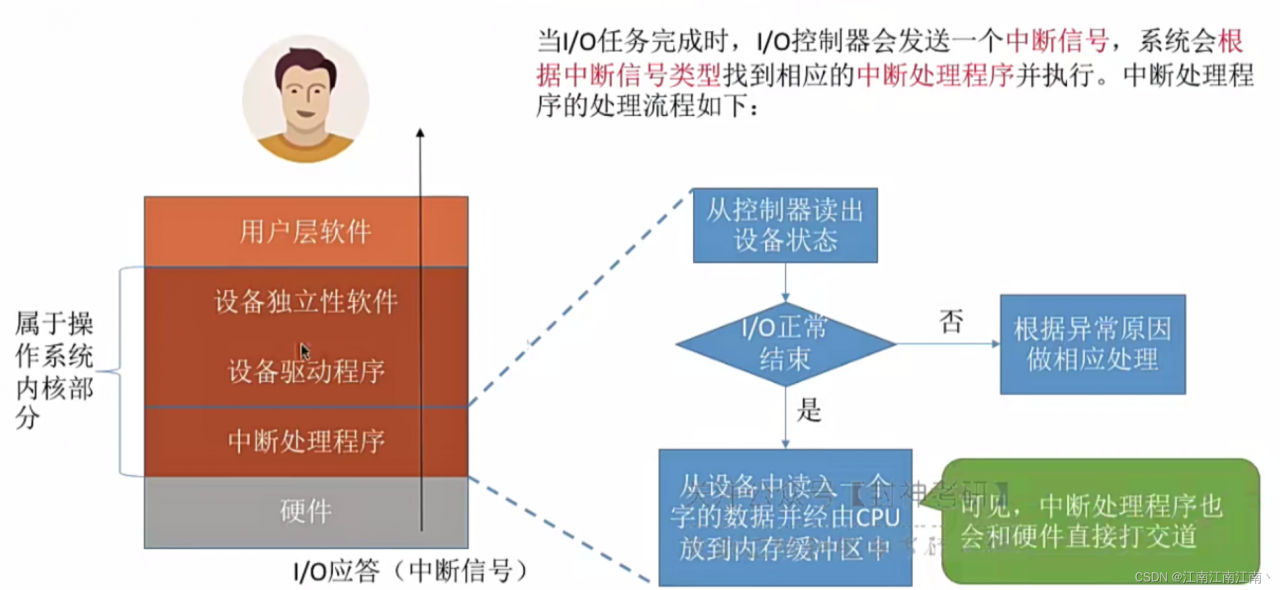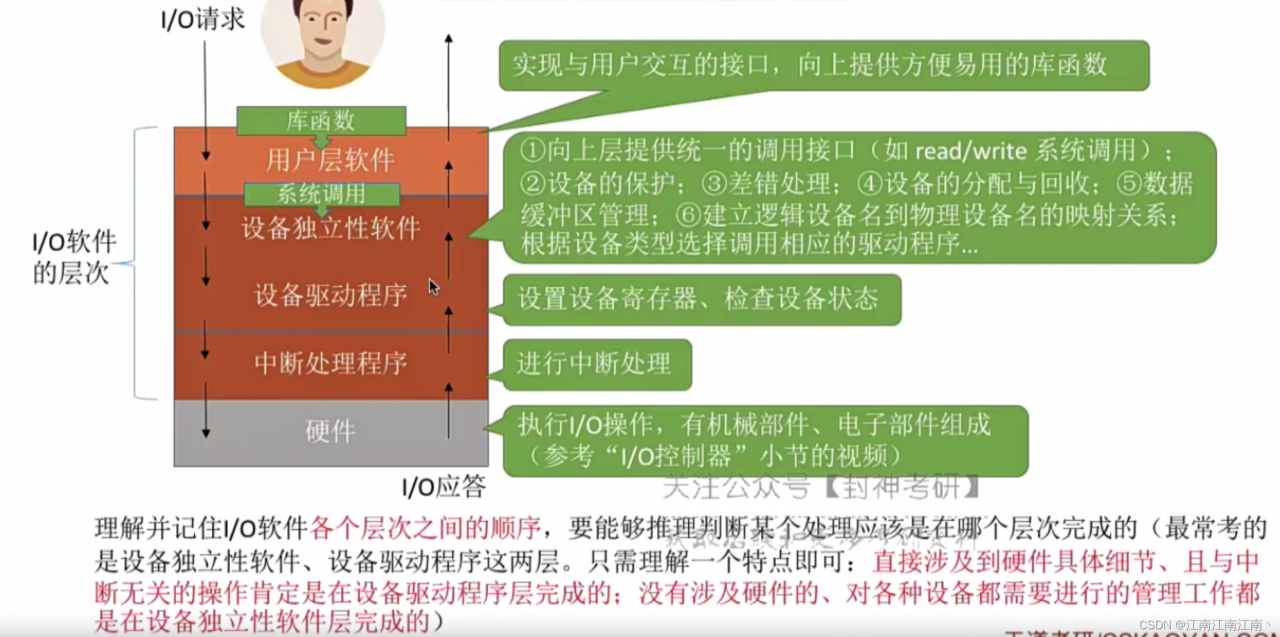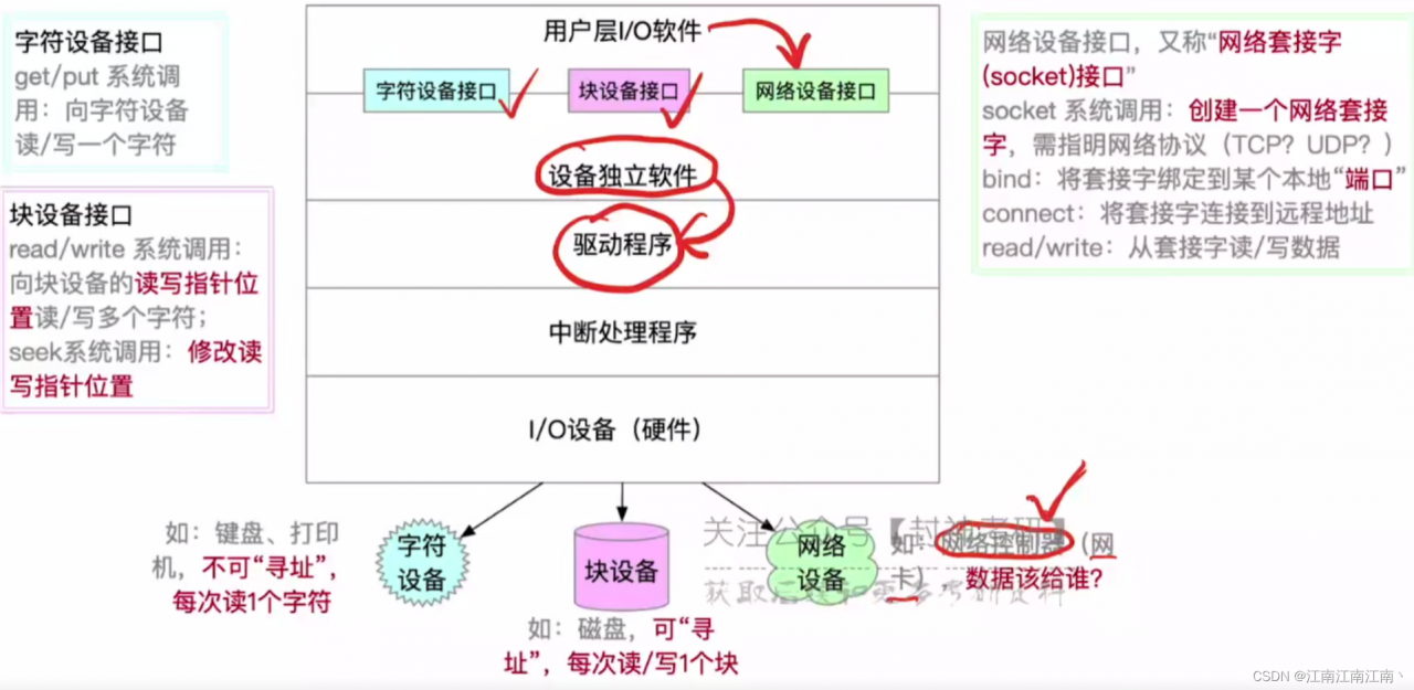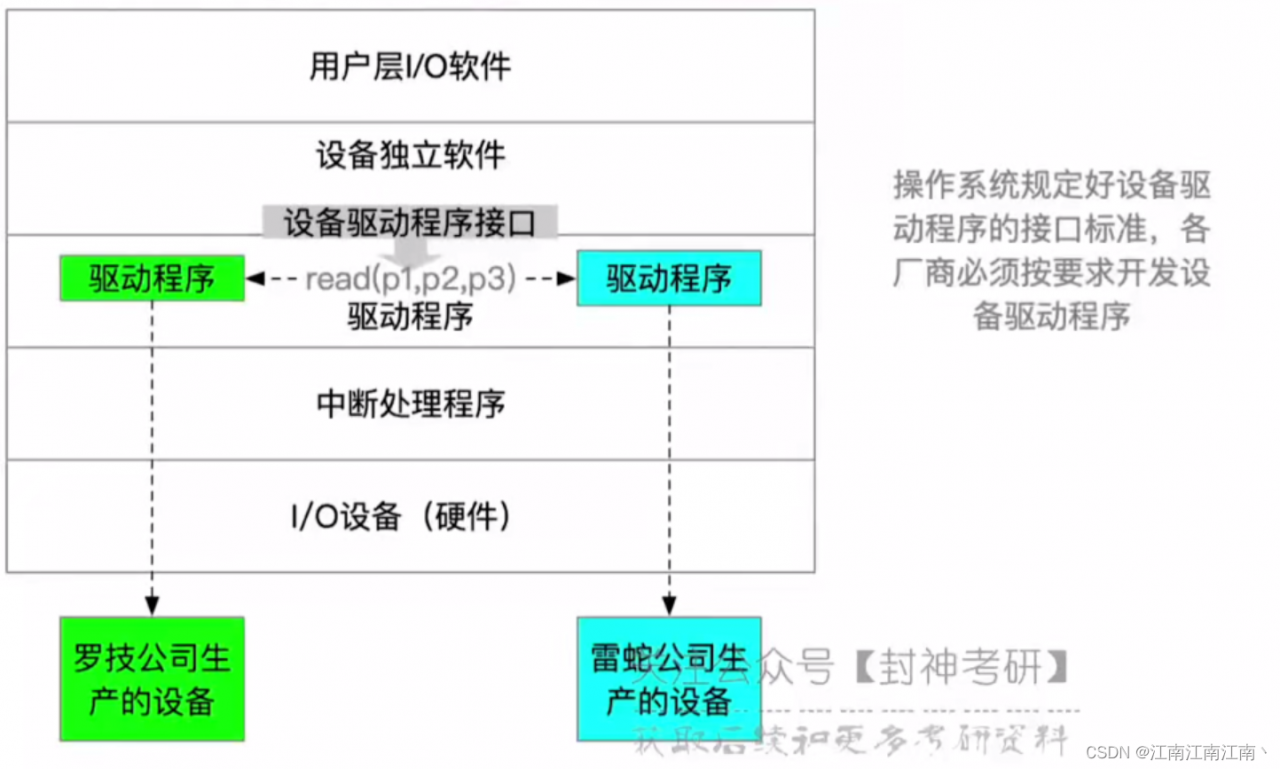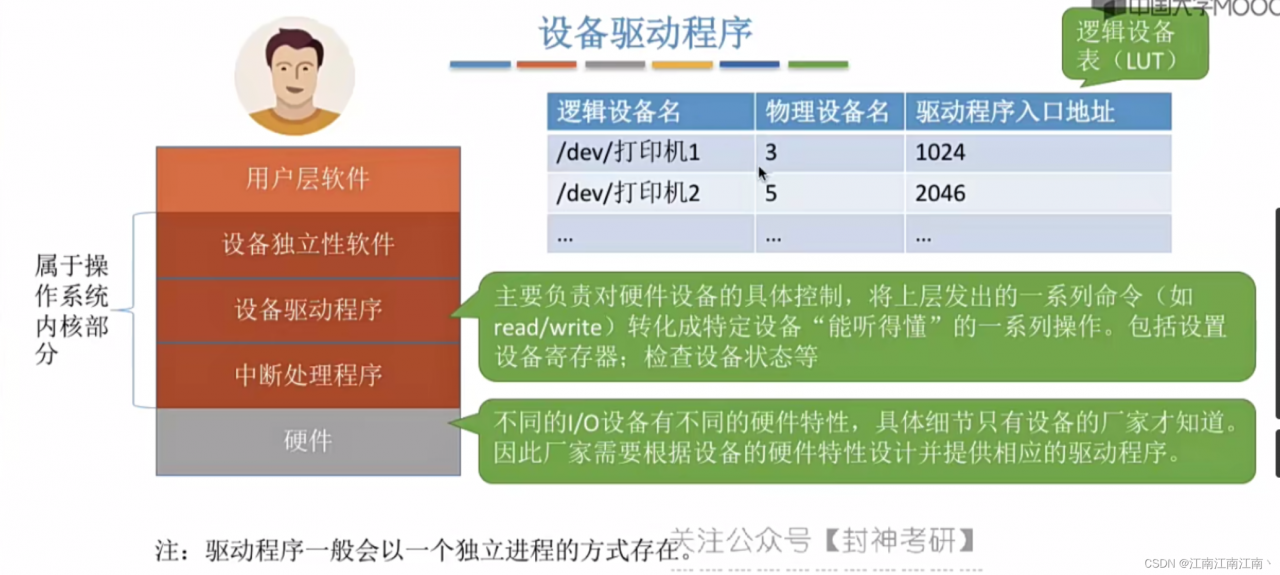 4.设备驱动程序:设备独立性软件不能直接操控硬件,必须调用驱动程序实现对硬件的具体控制
