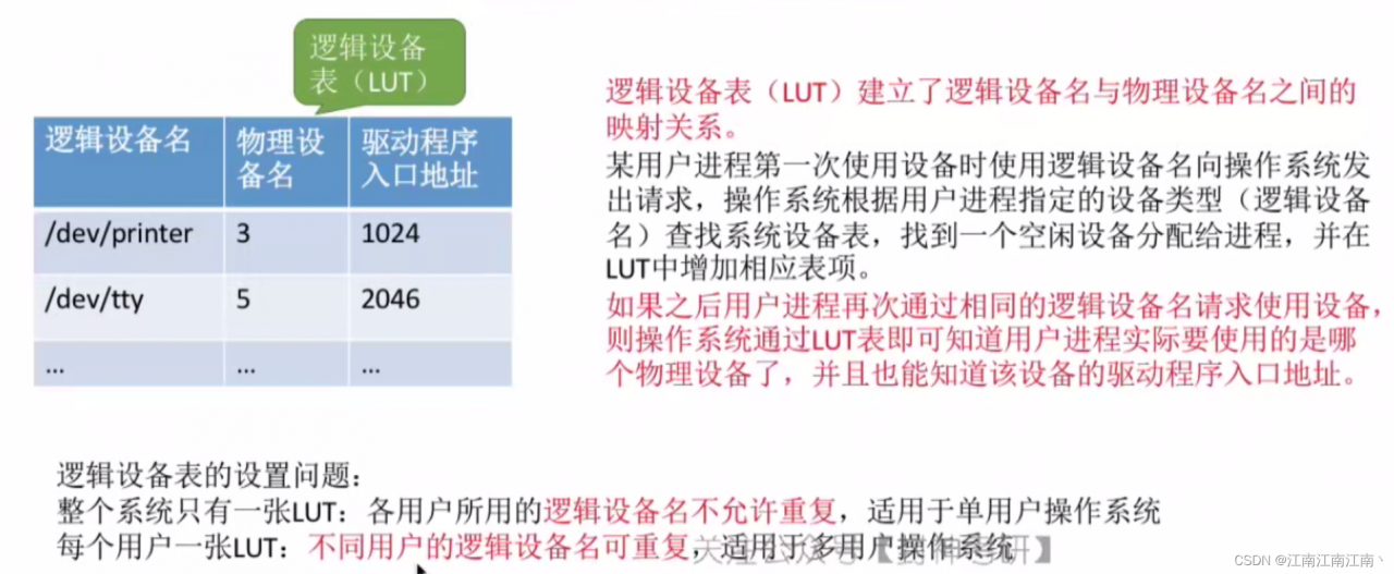 (1)整个系统只有一张逻辑设备表:只适用于单用户操作系统,因为不同用户可能使用某些相同的逻辑设备名