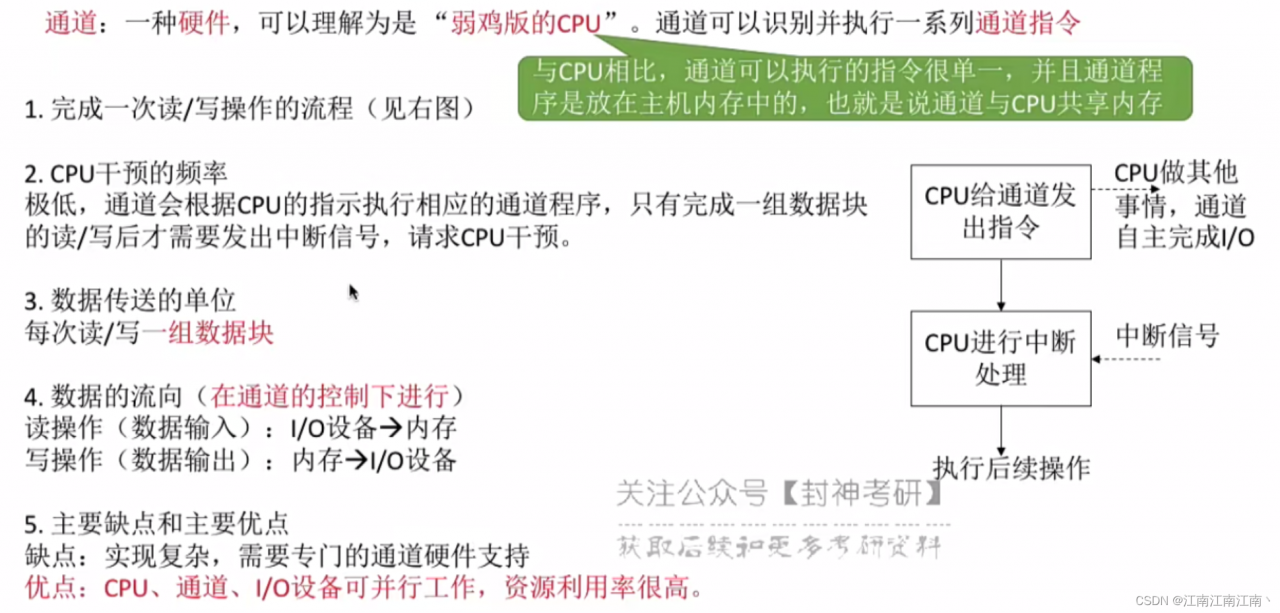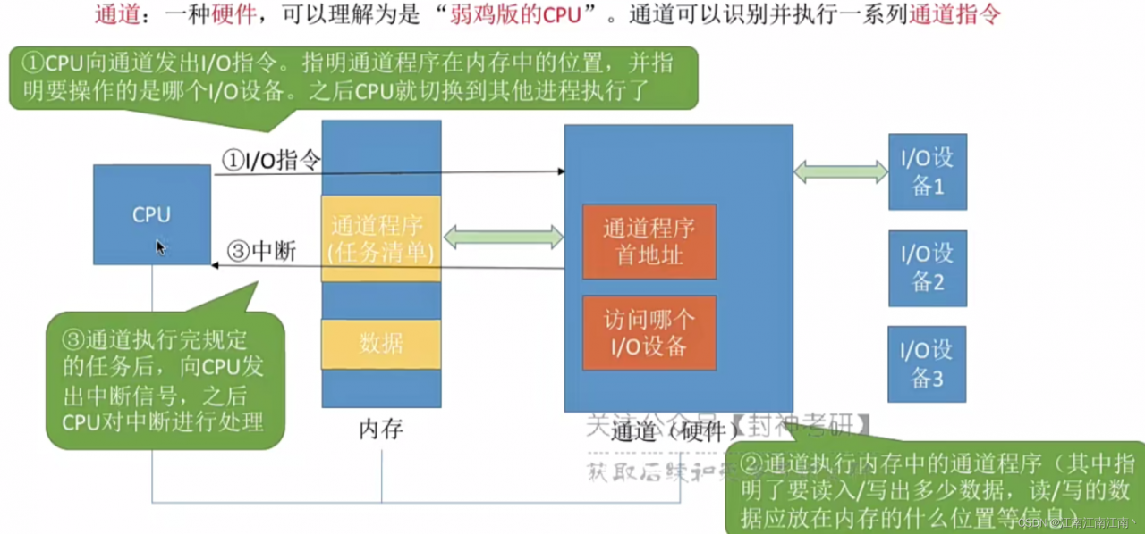2.通道在执行通道程序时才知道自己具体要做什么事,CPU只是向通道指明通道程序在内存中的存储位置和向通道发出I/O指令