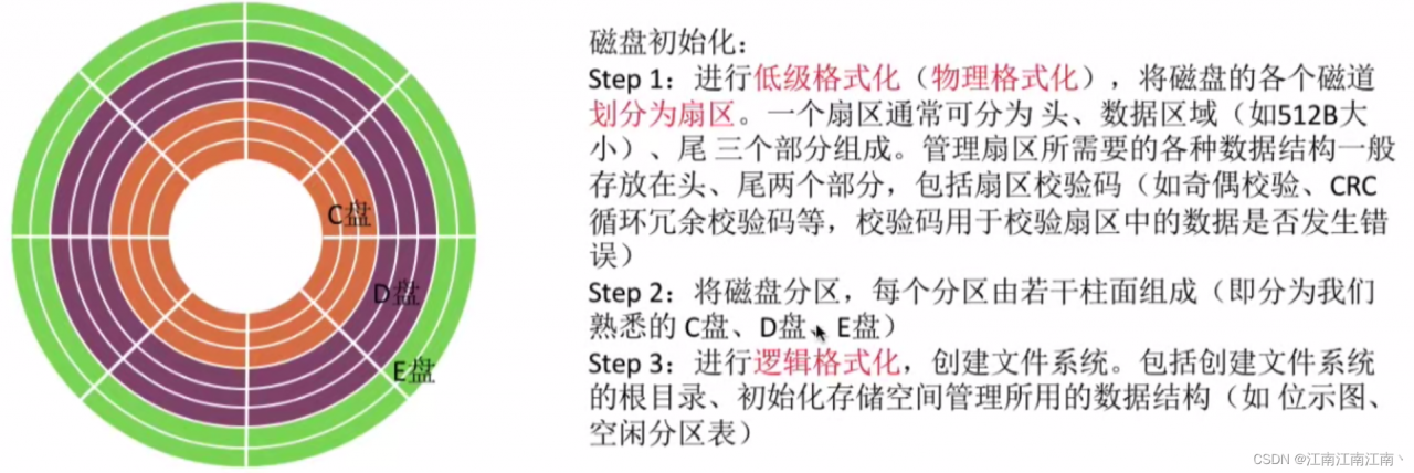 ②逻辑格式化(高级格式化):将磁盘划分为一个个的分区(分卷,例如:C盘、D盘),并创建文件系统