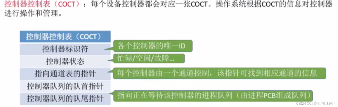 ①设备控制表:通过设备控制表中的指向控制表的指针找到该设备从属的控制器