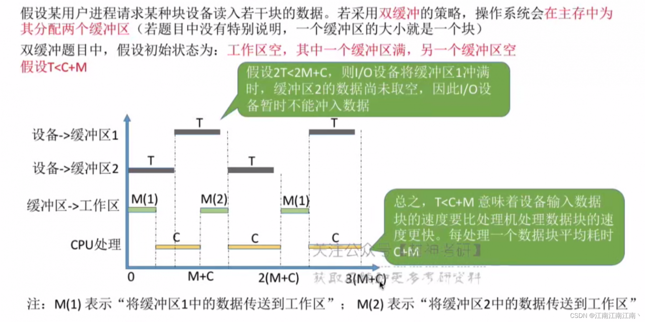 ②I/O设备输入缓冲区的时间T<CPU对数据处理时间C+数据从缓冲区传送到工作区时间M: