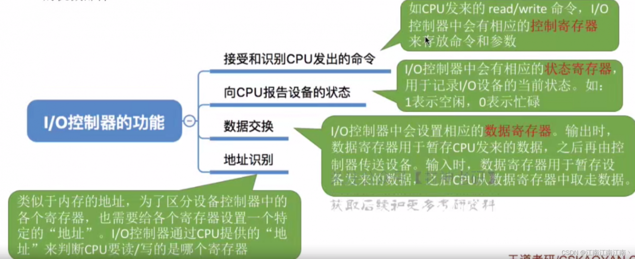 (1)控制器与设备的接口可能有多个,即一个I/O控制器可能控制多个具体的I/O设备,为了区别CPU具体控制的是哪个设备,需要给各个设备进行编号,即给各个控制器与设备的接口编址,同时,CPU也需要指明将要操作的是哪个设备