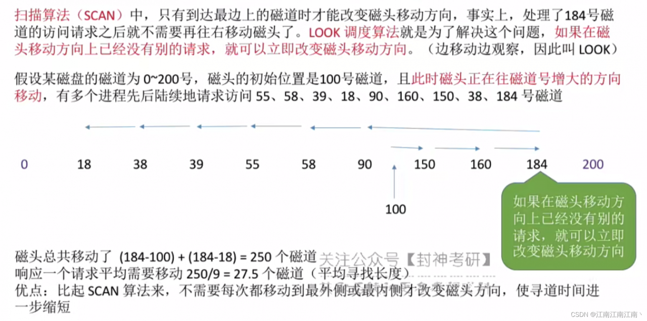 4.LOOK调度算法:解决SCAN算法中磁头移动方向上已经没有请求时仍需移动到最边上的问题