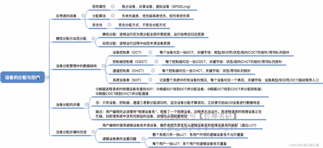①只有设备、控制器和通道三者都分配成功时设备分配才成功,才可以启动I/O设备进行数据传输