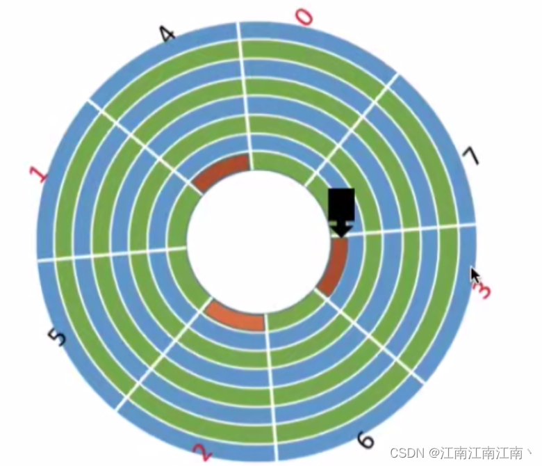 ①通过磁头臂带动磁头移动到目标扇区对应的磁道(磁头臂只能向内或者向外移动)