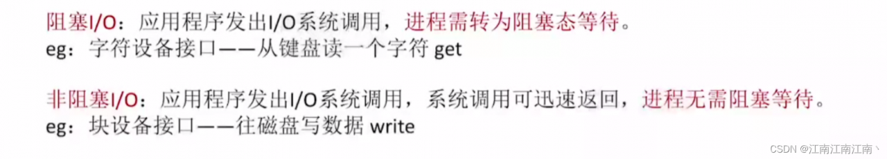 3.阻塞I/O和非阻塞I/O:发出系统调用后,是否需要转为阻塞态