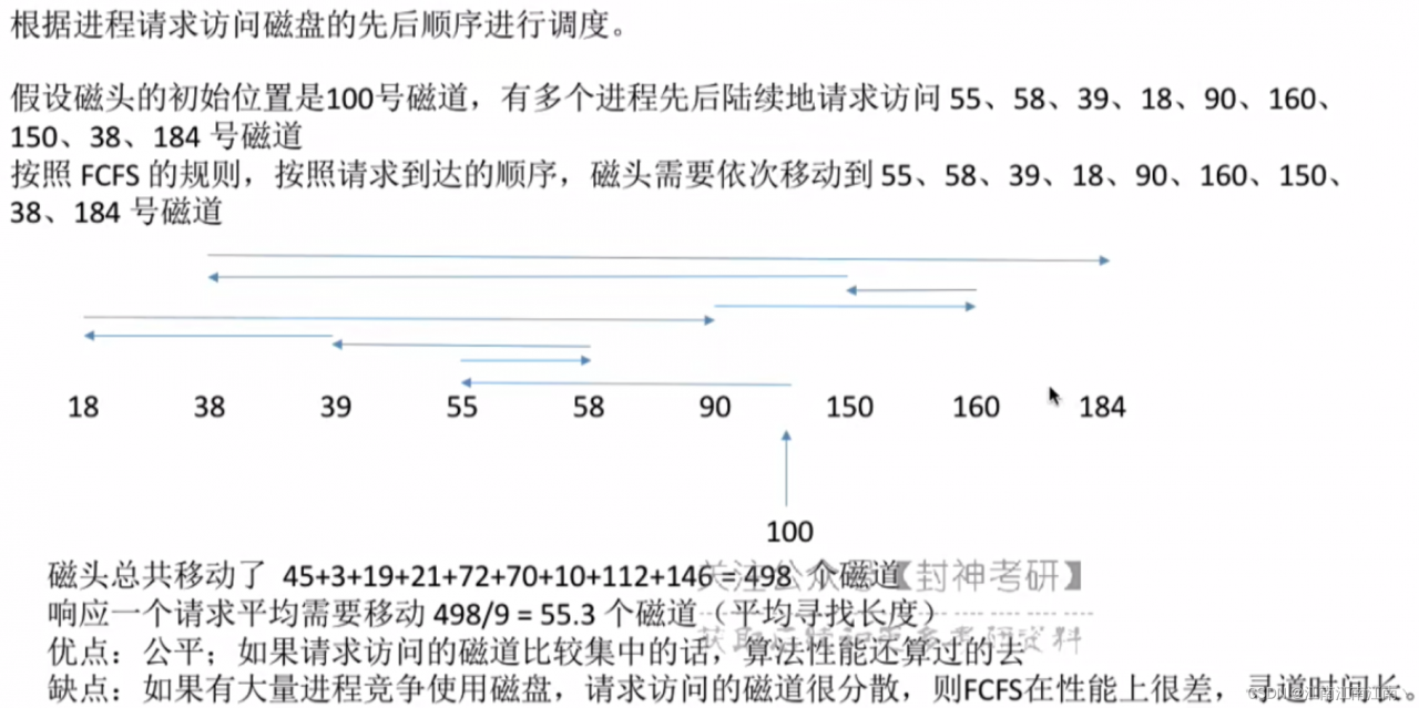 2.先来先服务算法(FCFS):谁先请求谁被先服务