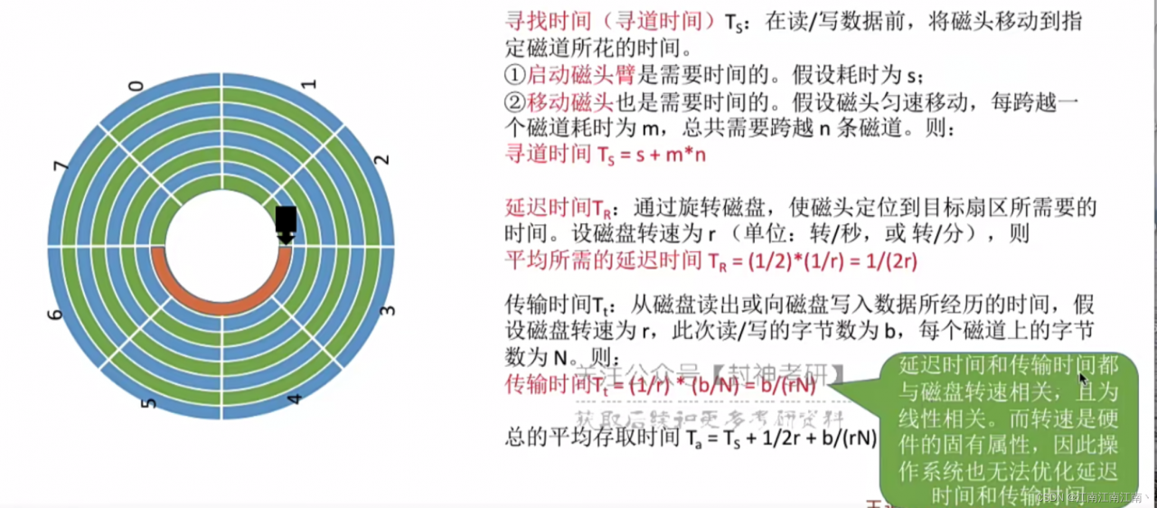 ①延迟时间中1/r为磁盘转一圈的时间,找到目标扇区平均需要转半圈,因此需要乘以1/2