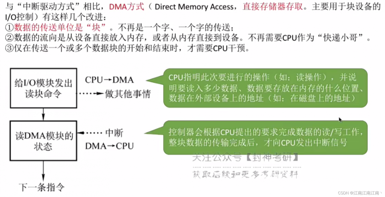 1.DMA和内存数据的传输单位是块,但DMA和I/O设备数据的传输单位仍然是字
