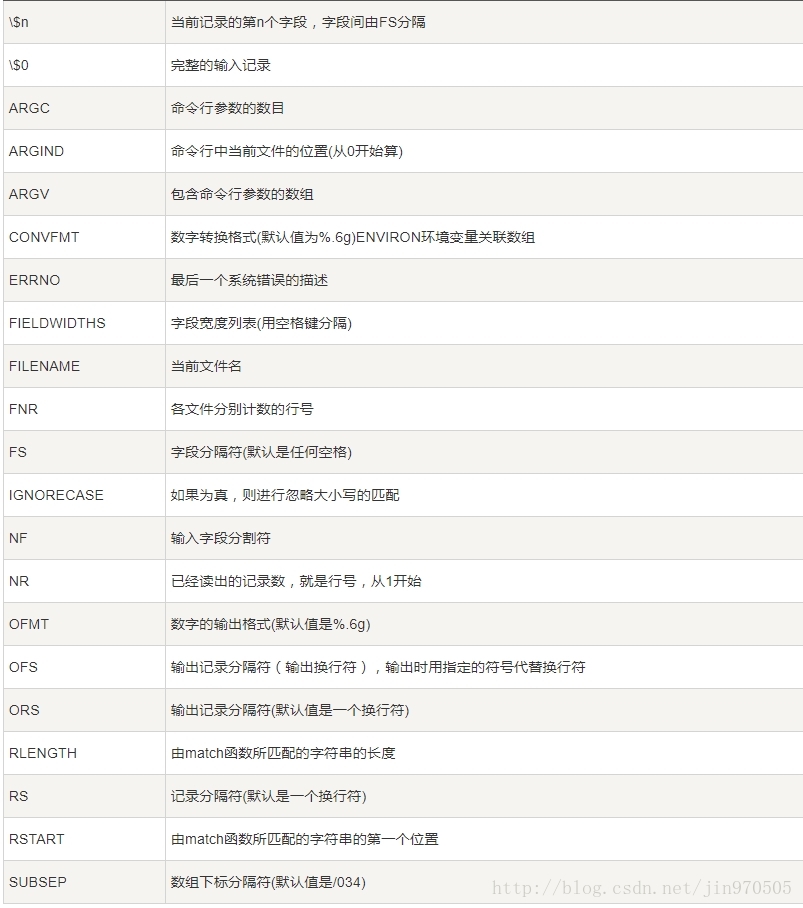 指定输入文件折分隔符,fs是一个字符串或者是一个正则表达式,如-F:-v var=value or –asign var=value