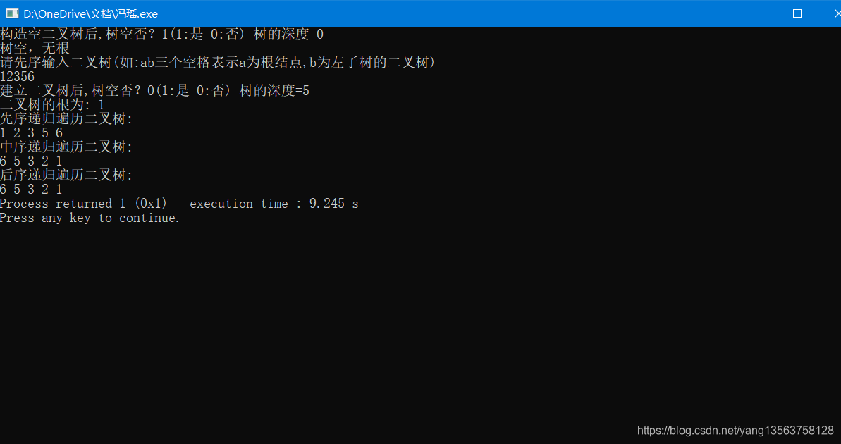 printf("构造空二叉树后,树空否?%d(1:是 0:否) 树的深度=%d\n",BiTreeEmpty(T),BiTreeDepth(T));