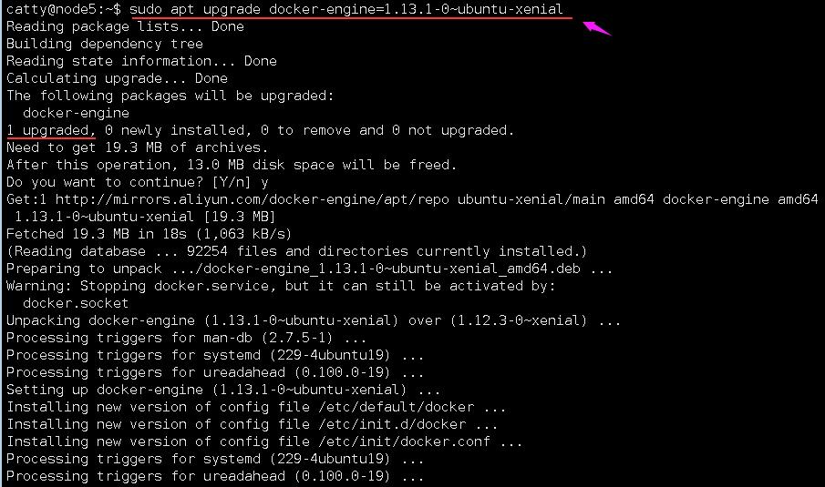 2、使用apt upgrade将Docker从1.12.3升级到1.13.1的过程