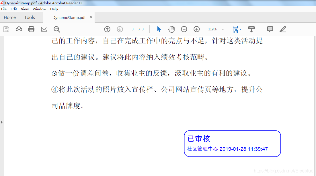 2. 添加动态印章。即加载PDF文档,并在动态的添加印章内容,包括印章字样、日期、时间、经办人、组织名称等。