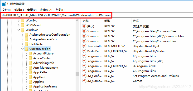 打开了之后找到HKEY_LOCAL_MACHINE\SOFTWARE\Microsoft\Windows\CurrentVersion这个路径(如果找起来嫌麻烦就直接复制这个路径粘贴到地址栏中敲回车——其实是懒~):