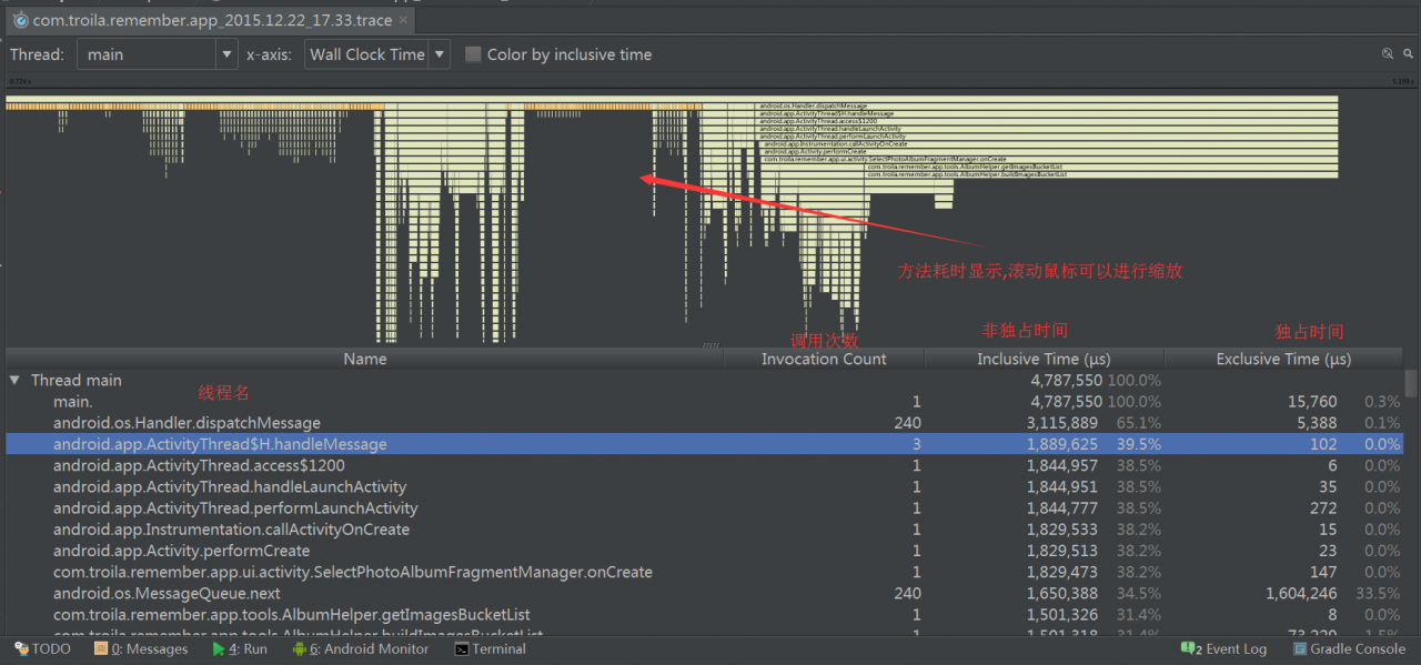 最后Pause_time表示这次GC操作导致应用程序暂停的时间。关于这个暂停的时间,Android在2.3的版本当中进行过一次优化,在2.3之前GC操作是不能并发进行的,也就是系统正在进行GC,那么应用程序就只能阻塞住等待GC结束。虽说这个阻塞的过程并不会很长,也就是几百毫秒,但是用户在使用我们的程序时还是有可能会感觉到略微的卡顿。