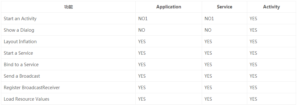 其中: NO1表示 Application 和 Service 可以启动一个 Activity,不过需要创建一个新的 task 任务队列。而对于 Dialog 而言,只有在 Activity 中才能创建