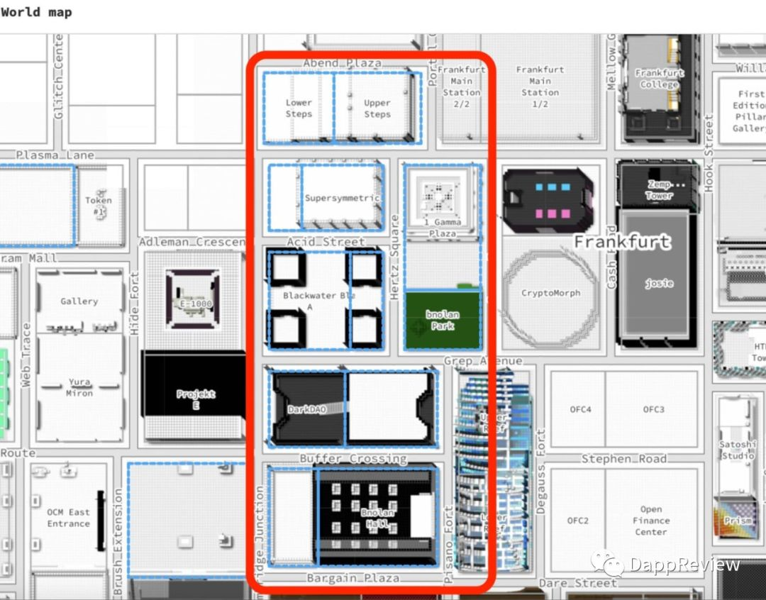 回想我第一次在CV里进行投资,那时的我坚信高度是游戏地皮的一项重要参数。为此,我在法兰克福(游戏内的区域)附近入手了一些相邻的地皮,因为那是游戏里高度上限最高的街区那时候,没人会傻到用超过一个ETH的价格从Ben(头部开发商)购买区区一个地皮,除了我。鄙人当时豪掷千金竞标地皮的做法在当时还引起了一些小骚动,但我始终对自己的观点深信不疑,现在回头再看1ETH的入场价格实在是香!要知道,眼下法兰克福地区的地皮价格售价已经涨到了30ETH到200ETH之间(2020年1月/2月数据)。