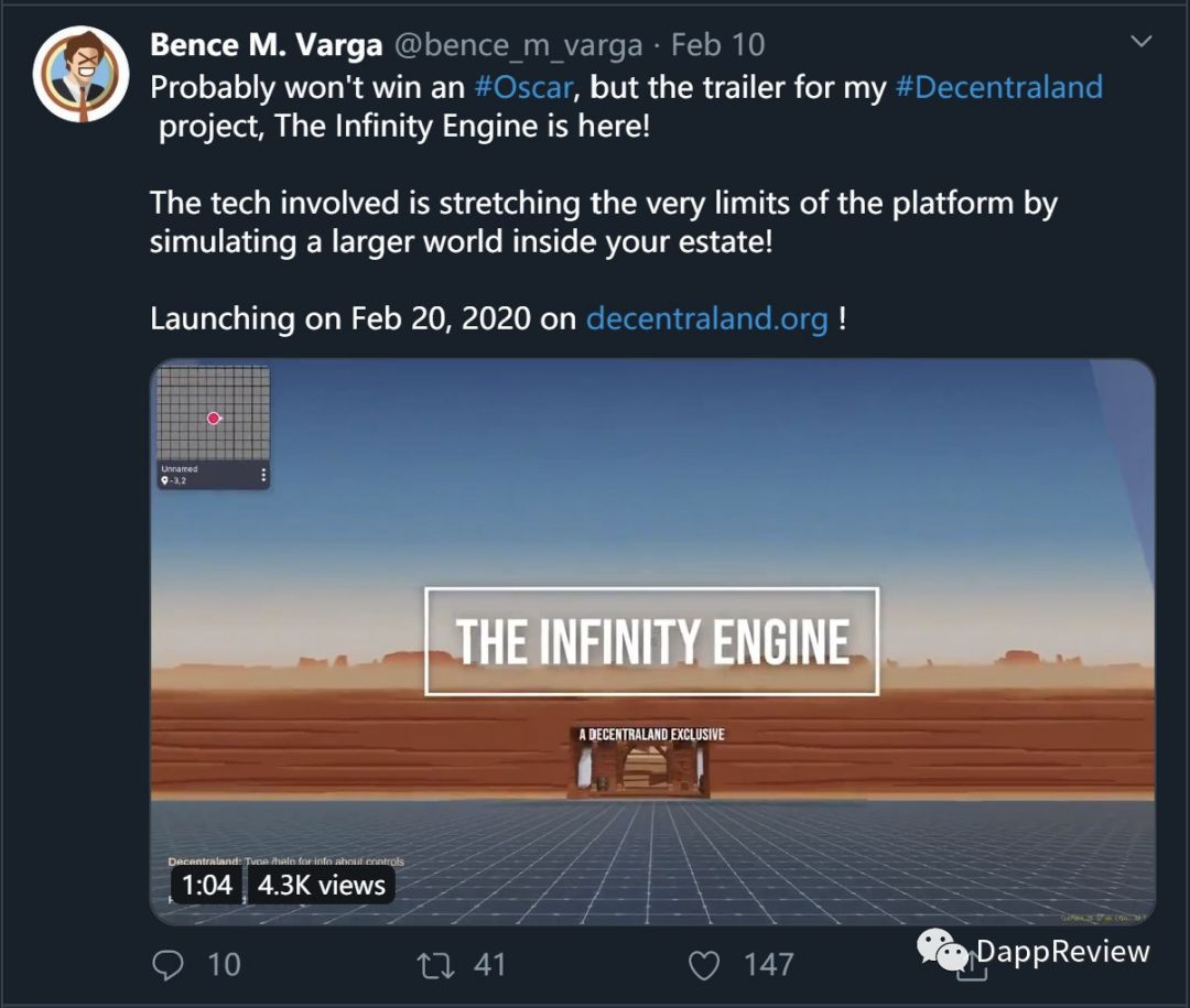 从DappReview的角度来看,以目前Cryptovoxels的开发团队和社区的情况来看,最终该游戏可能会停留在一个硬核而小众的状态,毕竟对于大部分不会创造建筑的玩家来说,能做的也就是进游戏游览一番各式各样的艺术品和建筑(如果懒得自己去看,可以让橙皮书的文章《房价3块/平的城市,这里的人们称它为魅力之都》带你一探究竟),至于其是否有可能随着UGC内容的增加而使得游戏变得更加玩法丰富,我们持保守态度。