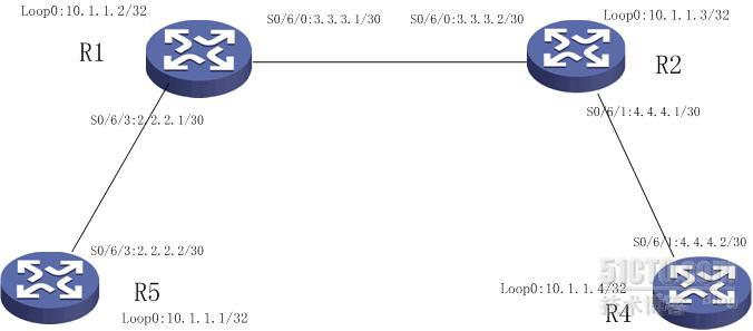 现将R5、R1、R2互联的接口类型更改成broadcast的类型