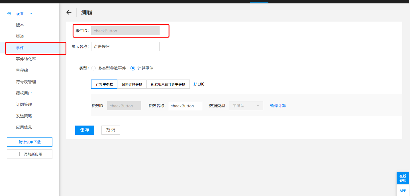 自定义事件可以实现在应用程序中埋点来统计用户的点击行为。例如我们的应用需要统计用户是点击了“,还是cheackButton按钮。自定义事件目前包括"计数事件"和"计算事件",这里主要讲下计数事件。