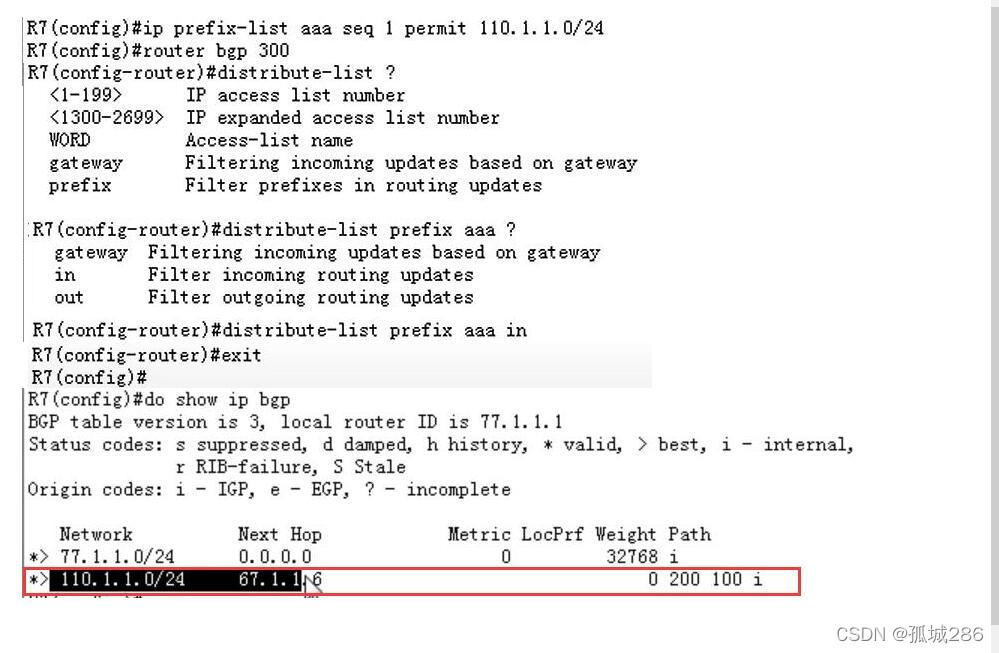邻居后面使用distribute-list时,distribute-list后面只能跟ACL,不能跟前缀列表。