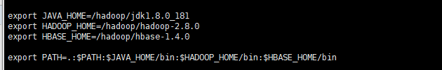 注意,在修改配置文件之前,先把hbase的环境变量配置到/etc/profile中,这步在前面搭建hadoop集群已经说过多次,在此直接上截图