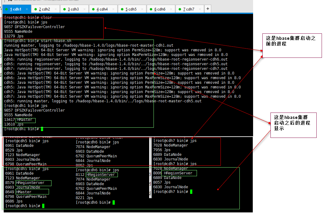 6> 在cdh1 上的主hbase上启动,随之整个集群都会被启动
