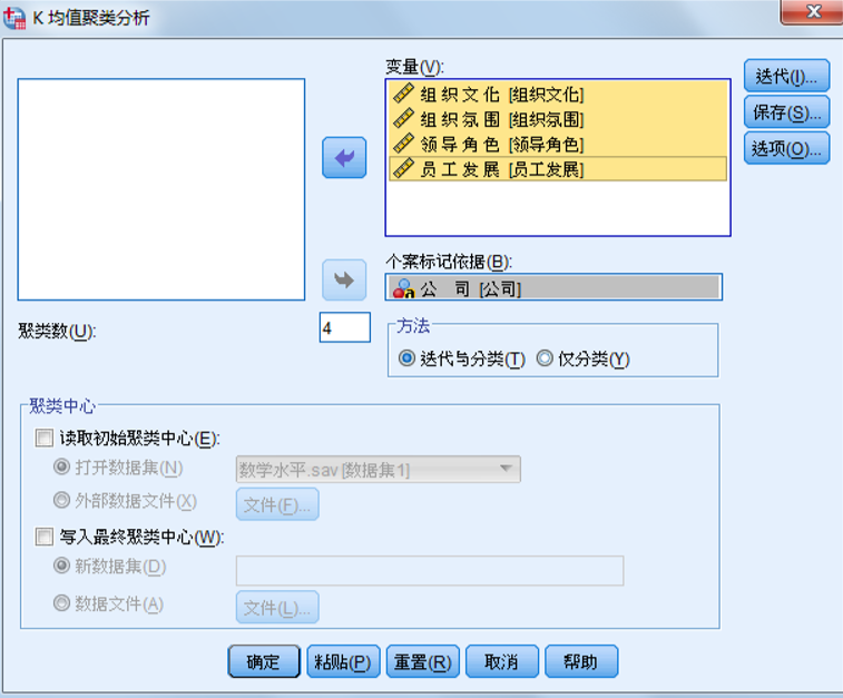 定义:快速聚类分析是由用户指定类别数的大样本资料的逐步聚类分析。它先对数据进行初始分类,然后逐步调整,得到最终分类。