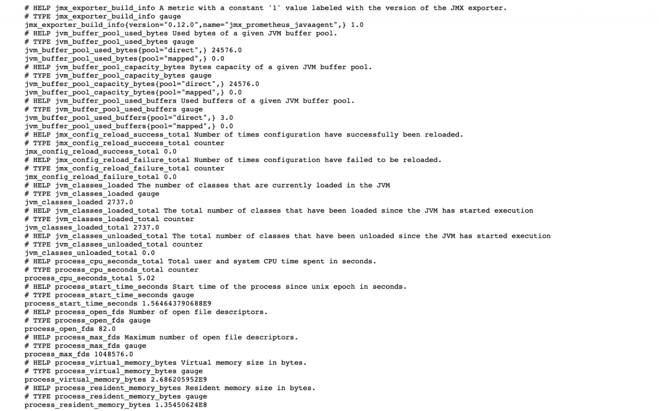 重新 docker build,build 后执行以下 docker run 命令可以查看收集的监控指标,这里 6060 端口就是我们的 jmx-export 端口: