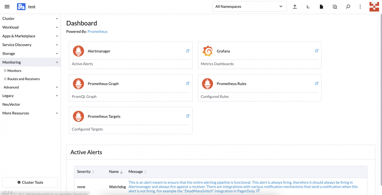 - Prometheus Rules:查看 Prometheus 配置的告警表达式页