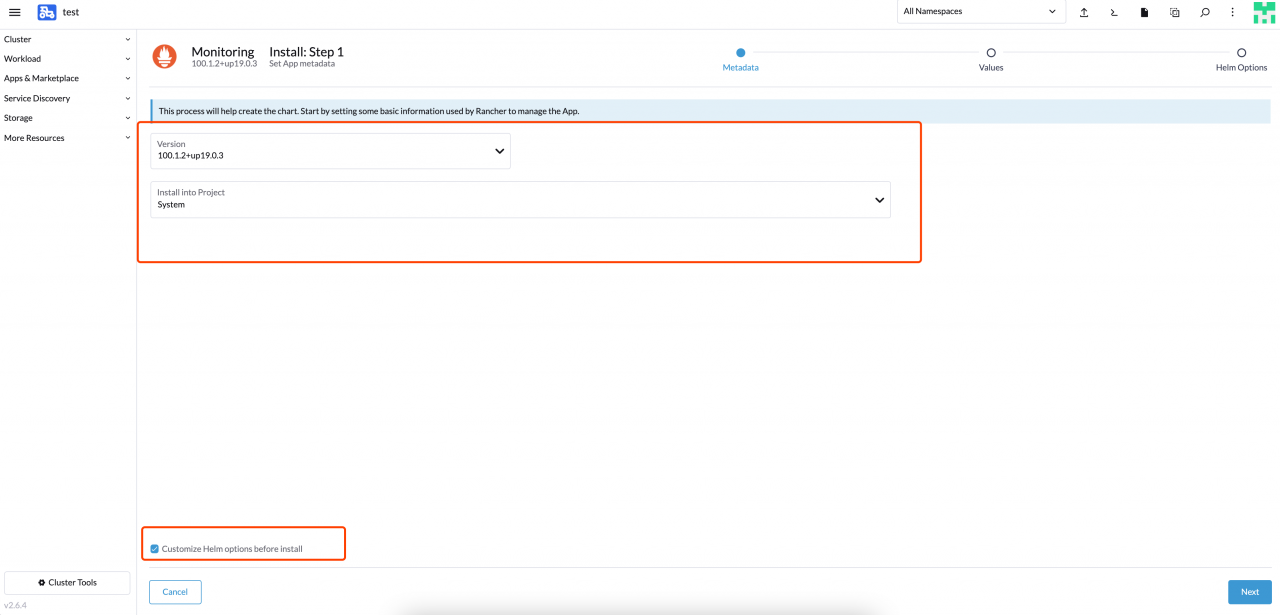 切换到对应集群,选择左下角 clusterTools 启用 Prometheus: