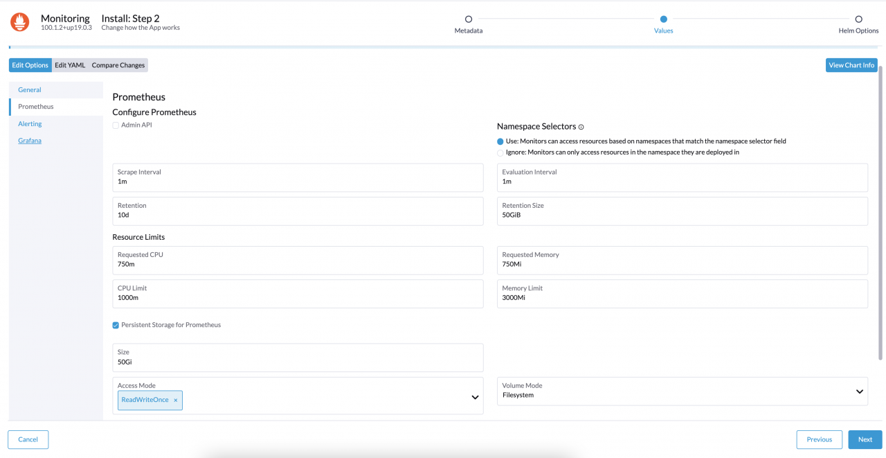 默认 node-exporter 资源 limit 配置较低,长时间运行后容易被 OOM KILL 掉,需要修改默认的内存限制为 150Mi: