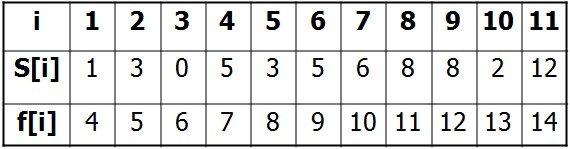例:设待安排的11个活动的开始时间和结束时间按结束时间的非减序排列如下: