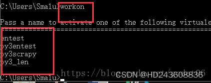 再次运行workon,就可以看到该目录下所有的虚拟空间了