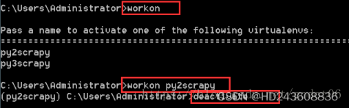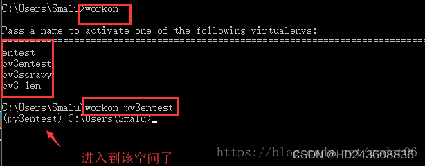 5 进入(使用)某个虚拟空间:workon 虚拟空间名