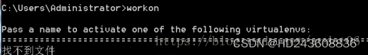 2.然后使用workon查看是否安装成功(workon是简化操作的神级命令之一,下面你就可以体会到)