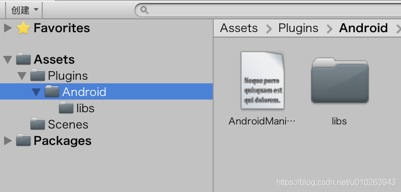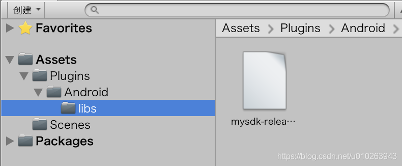 把SDK编译成aar,然后把aar文件、manifest文件放入Unity对应的Assets文件夹下的plugins下的Android下,以及libs下,没有的文件夹自己新建一个,目录对应如下: