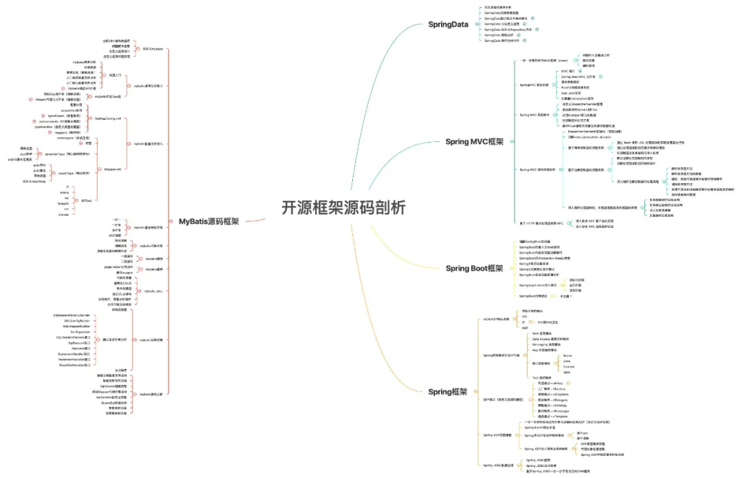 先给大家分享一张开源框架学习知识图谱,这里包含了 Spring 全家桶的每个框架的详细知识点。