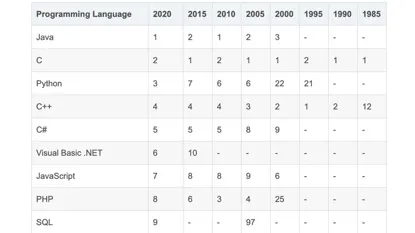 根据 TOIBE 的排行,在编程语言的排名中,Java 始终都是前几位。