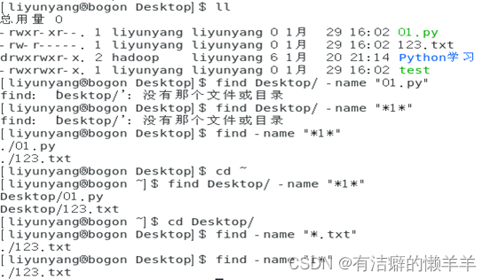 01 | find[路径] -name “*.py” | 查找指定路径下扩展名是.py的文件,包括子目录 |
