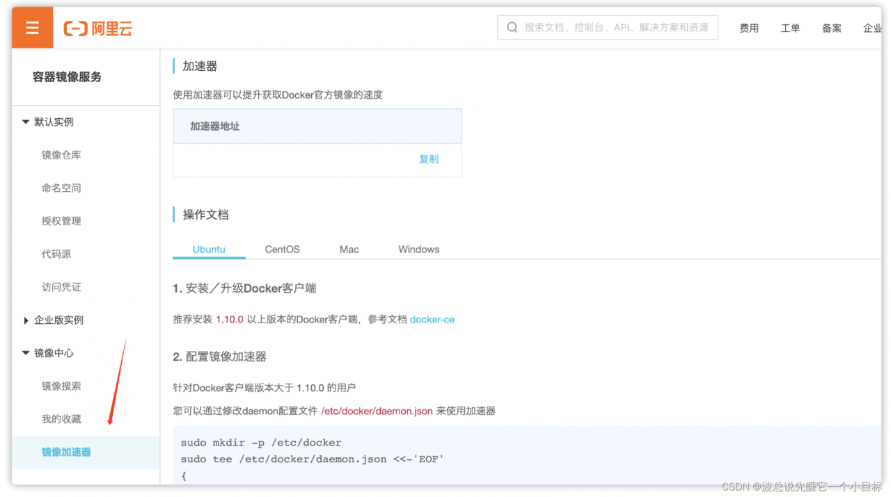 如果你机器是国内的机器,那么需要配置镜像加速,一般使用阿里云镜像加速 阿里云加速官网
