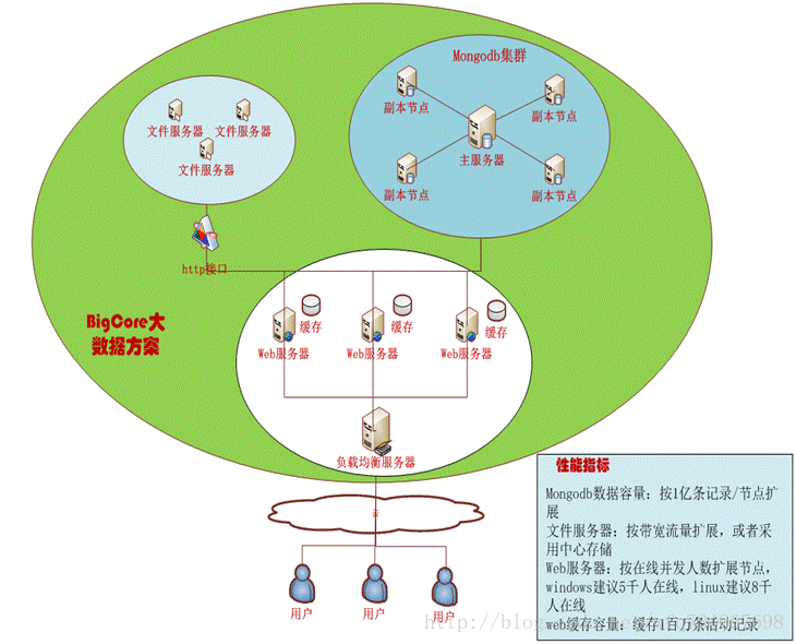 Mongodb是一个开源的nosql 内存数据库,基于json格式的文档存储,数据对象通过json的序列化与反序列化传输。在服务器内存足够大时,把所有的数据装载到内存中,便于快速访问;当内存不够大时,把不常使用的数据持久化到磁盘文件;最新版本的mongodb 3.0 已经提供了服务器集群的功能,并且引入了hadoop大数据的mapreduce并行运算模式,这让海量数据全部存储与多台服务器的内存上提供很好的解决方案。