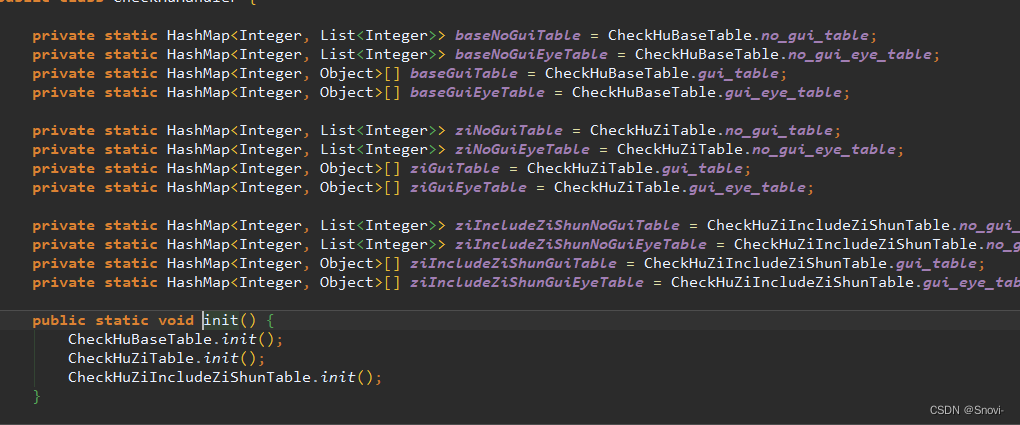 所谓查表,顾名思义,就是想知道能不能胡牌,只需要把手牌放进去查一下表,就知道了。那么问题来了,什么样的表呢。说白了,就是将所有可能形成组合穷举出来,放到Map里,打个比方。假设我现在手牌是清一色,那么有多少种组合呢,11122233344455 12345678911234 22334455667788 .......等等等N种,所以这个表的数据非常非常大,大概在几百万条,会占据一定的内存空间(但其实不到100M)、构造这张表的难度非常大,要考虑各种可能,从1张牌到14张牌,从杠子到对子,还要支持癞子。