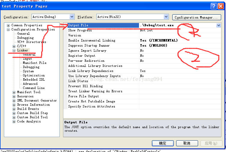 2. 项目>>属性>连接器》》常规》》文件路径 .\Debug\test.exe